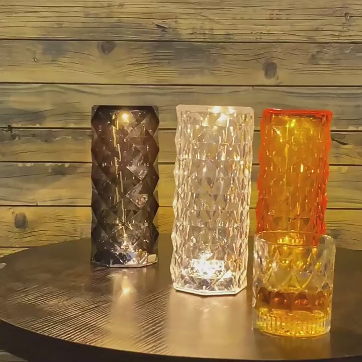 სასტუმროს, საძინებლისა და რესტორნის სენსორული მართვის LED ღამის შუქი, უსადენო დატენვადი RGB, 16 ფერის LED სახლის დეკორი, კრისტალური ლამპა