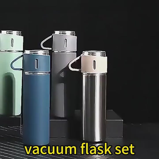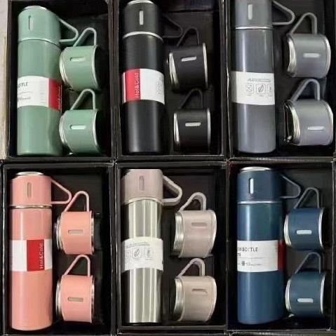 თერმოსის იზოლირებული ბოთლი, ვაკუუმური ფლასკი, წყლის ბოთლი, ჭიქა, თერმო ტამბლერი, საჩუქრის ნაკრები 3 სახურავით