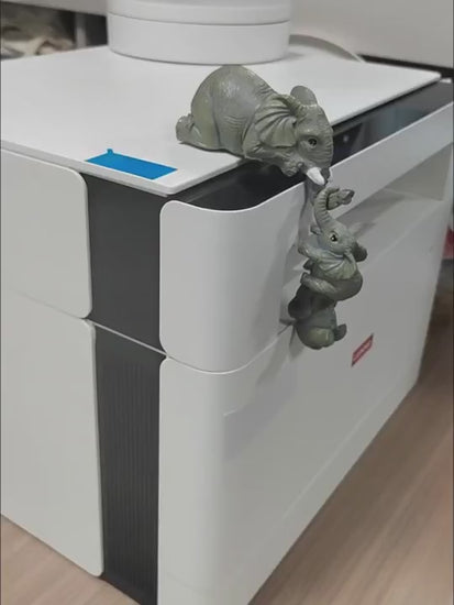 3 სათამაშო სპილო ერთმანეთზე უმაგრდება და საყვარელ დეკორაციას ქმნის. ახალისებს ინტერიერს.